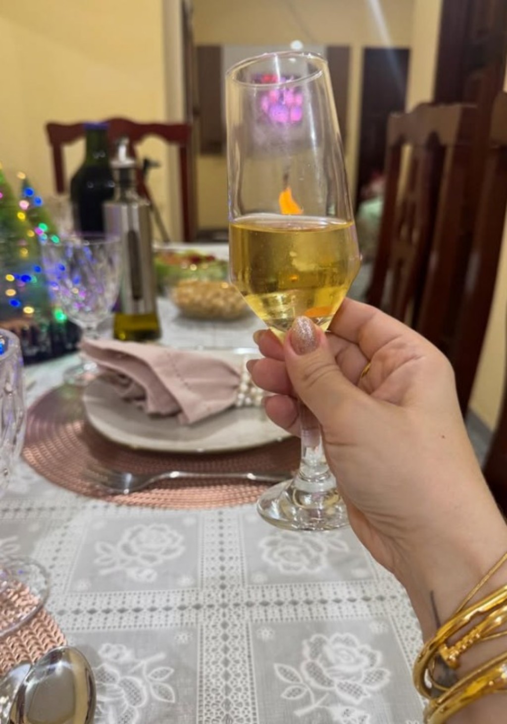 Ela participa de abraços de meia-noite, de brindes cheios de esperança, de fotos que eternizam momentos, de orações silenciosas feitas entre um sorriso e outro. Ela faz parte da história.