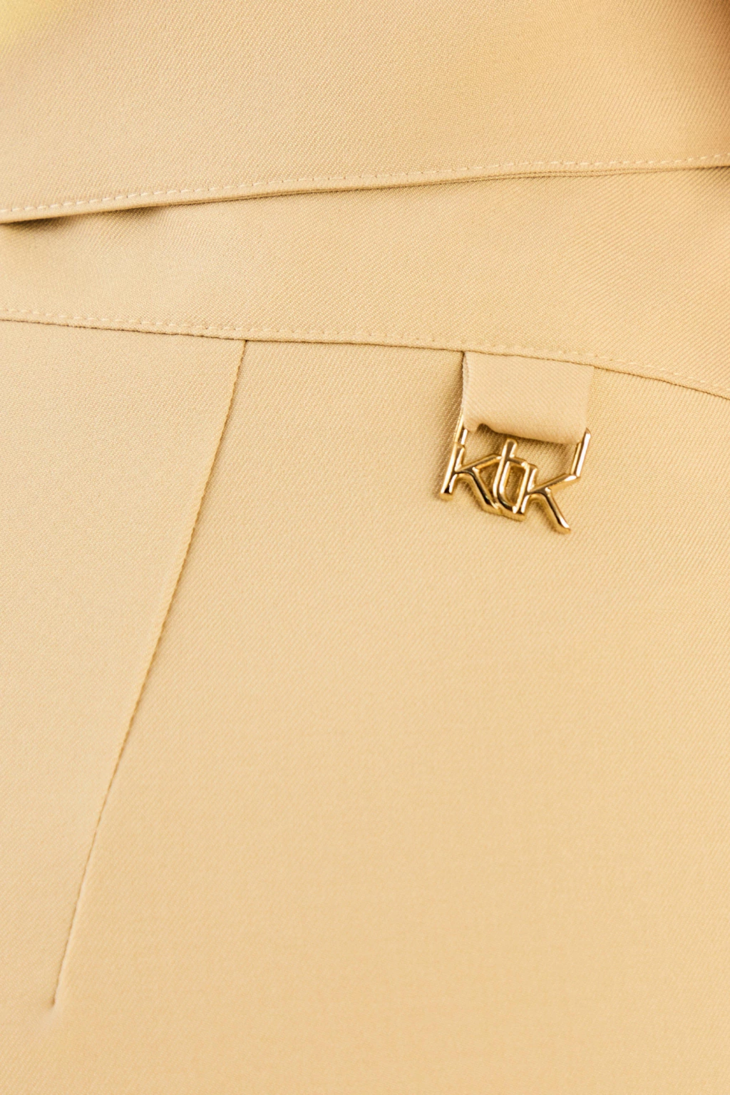 O short acompanha a mesma proposta de construção precisa, com cintura alta que desenha a região abdominal sem marcar. Os bolsos frontais funcionais proporcionam praticidade, mantendo a estética clean e sofisticada. O destaque fica por conta da fivela orgânica metálica, aplicada no centro da cintura, que adiciona personalidade e um toque de exclusividade ao conjunto.