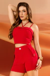 A parte de baixo conta com um efeito de short-saia, garantindo praticidade e liberdade de movimento sem abrir mão da elegância. O fechamento em zíper invisível nas costas oferece um acabamento limpo e discreto, reforçando o ar sofisticado da peça.